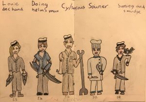 No pirate ship would be complete without a crew of colourful characters, these five cheeky renegades certainly fit the bill. Whilst I included two deckhands, a helmsman, a mechanic and a cook, I forgot about the first mate. It’s always possible that these characters and their ship, may sail into the background in of the world of Gear, they do belong to the era of my childhood, a time spent playing videogames, like skies of Arcadia.