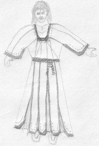 ‘The servant Martha knocked and entered the room, carrying a dress wrapped in tissue paper. She laid the dress carefully on the bed and began to unwrap it, revealing the most beautiful gown Keyanna had ever seen. It was made of eight white panels almost oblong, and in between them were specially shaped blue panels.’