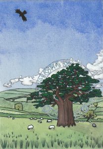 One morning as the group trudged up hill, Melody spotted a dying tree in a field of sheep, it was a pathetic sight, its leaves were brown and hanging limply despite the glories of spring. Stopping her companions she unpacked various pieces of equipment, five large crystals were placed around the base of the tree and lines of white sand joined them together to form a magic circle. She had tried this several times before on other unhealthy trees and plants, in the hope to purify the plant and restore its vigour.