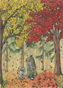 This was all hundreds of years ago, but you can still find the standing stone at the edge of the woods, it has now been worn almost smooth by the passing of time and weather. Some folks in those parts still say that on stormy nights you can hear Gallant howling as he patrols the forest, but that might just be an old wives’ tale, the only way to be certain, is to go and investigate for yourself.